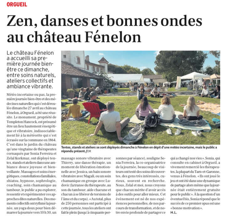 Au-delà de mes consultations individuelles, j’ai à cœur de faire rayonner l’univers du bien-être et de la spiritualité au plus grand nombre. À travers des événements comme la Journée Découverte du Bien-Être à Orgueil, que j’ai co-organisée, je souhaite ouvrir des espaces de partage, de transformation et de reconnexion à soi.