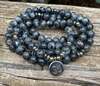 Bracelet tibétain, appelé Mala, composé de 108 perles en pierre naturelle + 1 breloque en métal argenté Om.